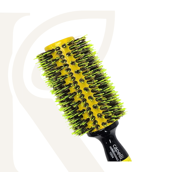 A escova profissional Capelli de Cerâmica possui cerdas naturais de javali e pinos em nylon que proporcionam maior aderência ao escovar os fios.