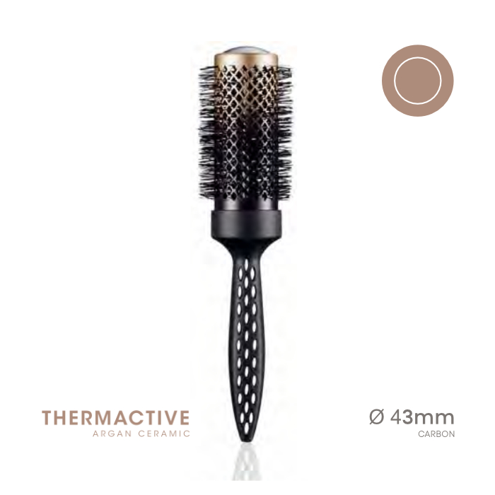 O cilindro muda de cor quando o calor direto sobre a escova atinge os 60°C. Ativando as propriedades do revestimento cerâmico com infusão de óleo de argão.