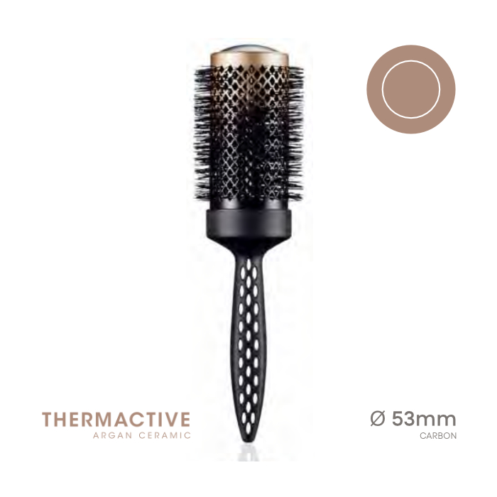 O cilindro muda de cor quando o calor direto sobre a escova atinge os 60°C. Ativando as propriedades do revestimento cerâmico com infusão de óleo de argão.